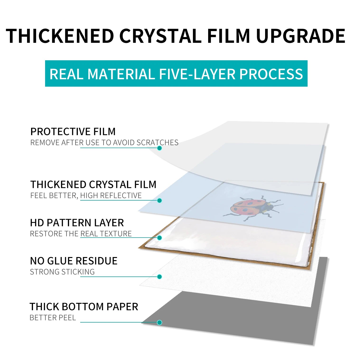The use of thickened crystal film ensures durability and a premium feel, while the enhanced adhesive guarantees easy application and strong hold without leaving any residue upon removal. The stickers are designed to be easy to clean, making maintenance a breeze and ensuring that your walls always look fresh and inviting.