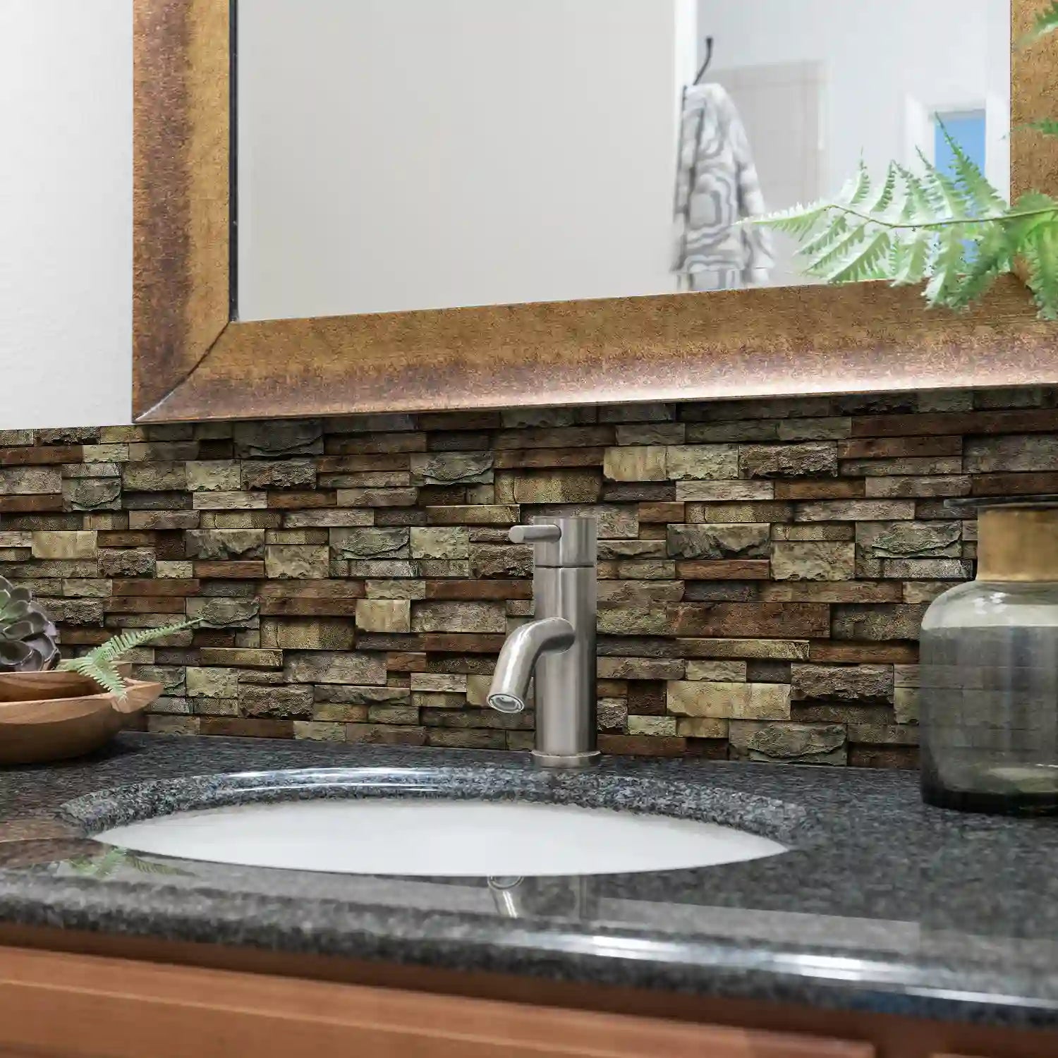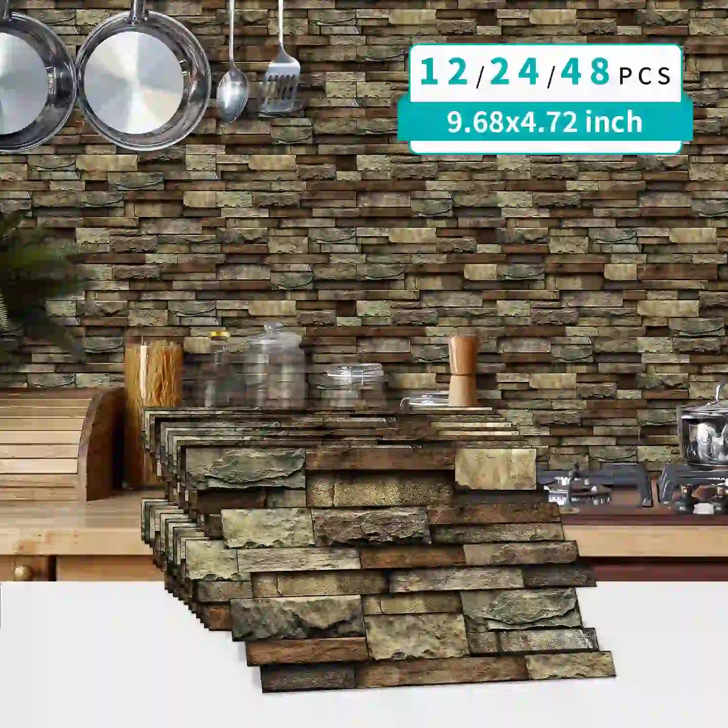 Special Shaped Marble Tile Sticker (Dark Brown) 12pcs Peel And Stick Wallpaper Luxury and Elegant Style Wall Decor