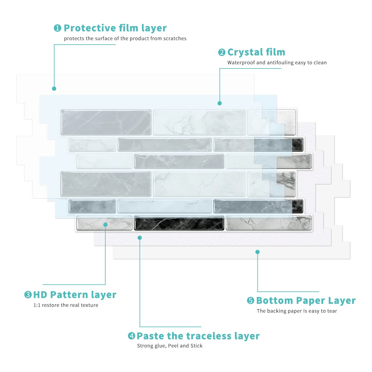 [Fresh Appearance Of Your Old Tile]: Provide a clean, polished look that revitalizes surfaces, covering up old, worn-out tiles, making them look brand new.The high-quality print of marble designs adds an elegant touch to any room.