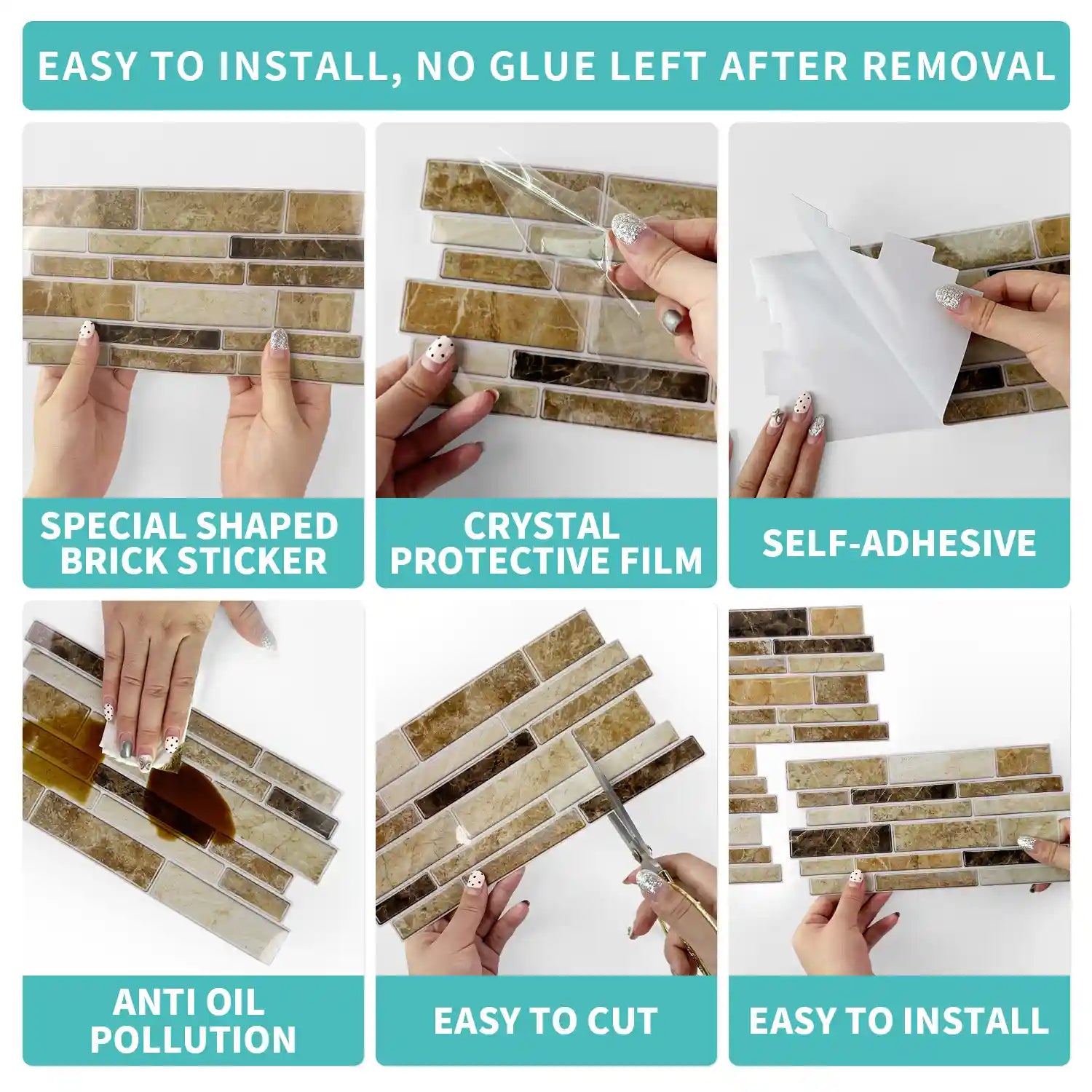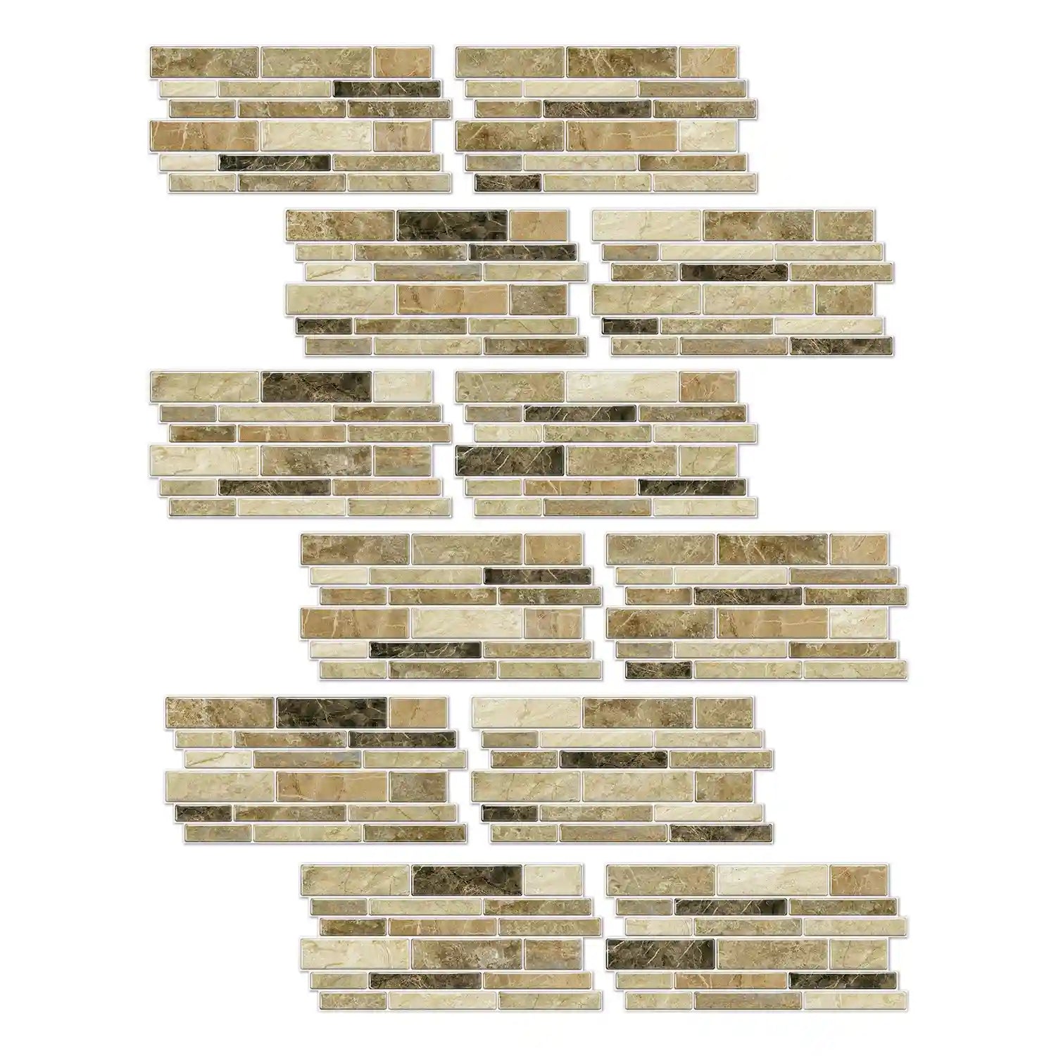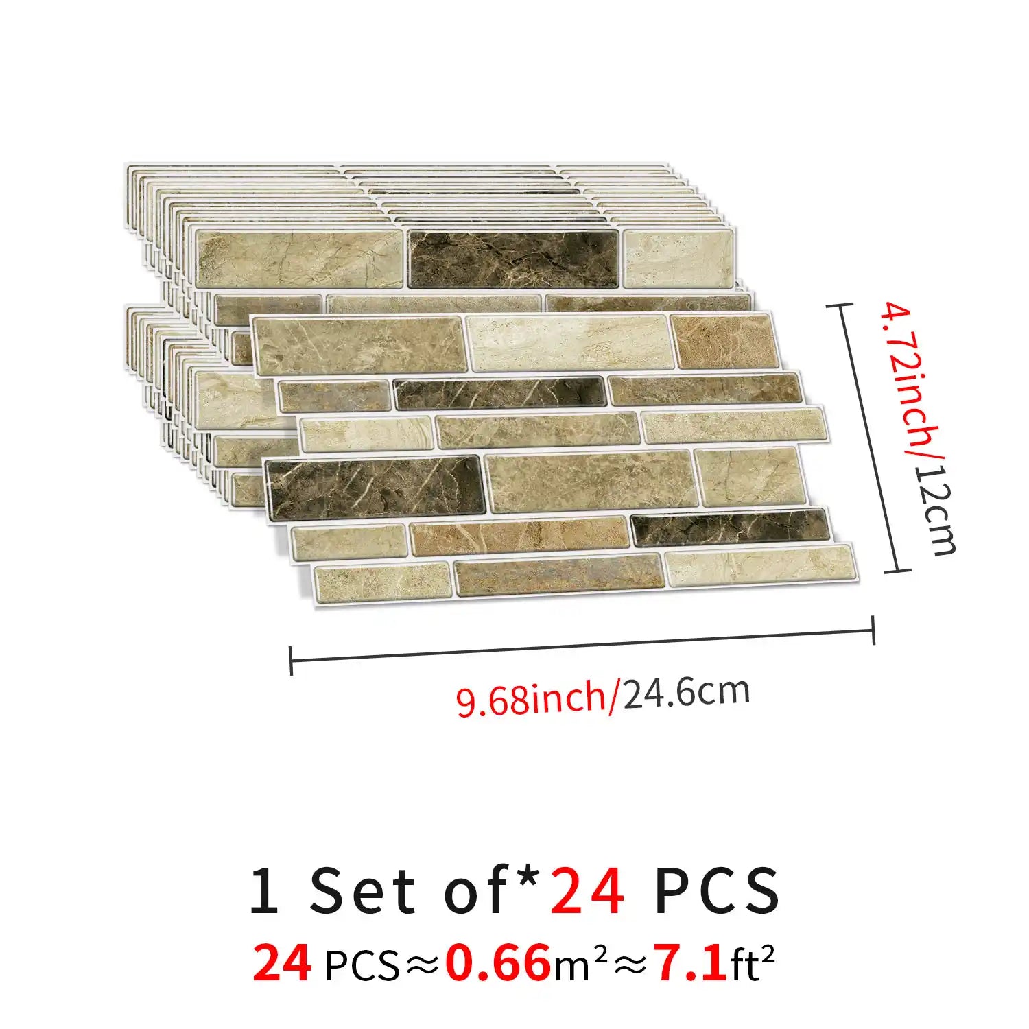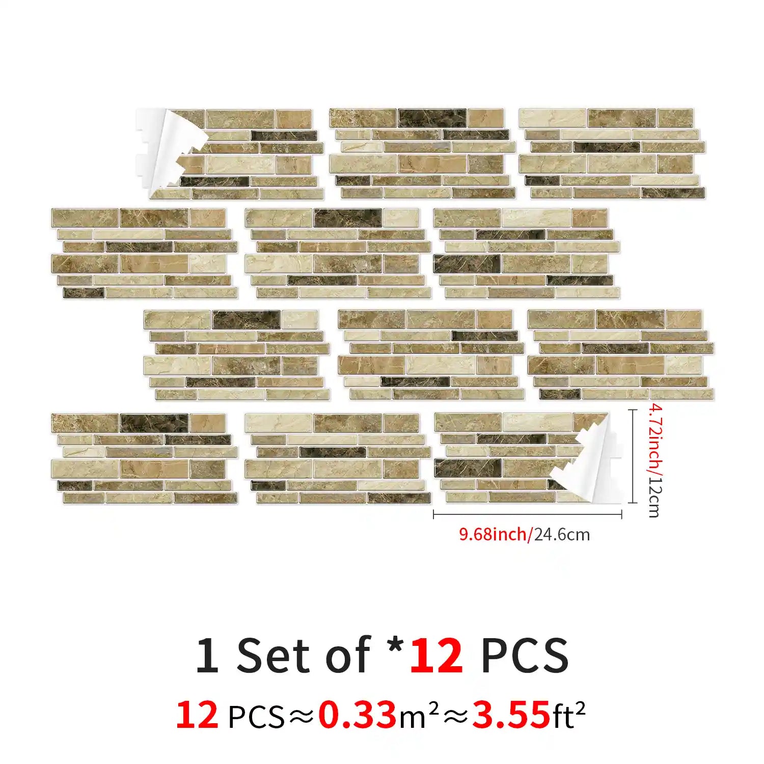 Special Shaped Marble Tile Sticker (Dark Yellow) 12pcs Peel And Stick Wallpaper Luxury and Elegant Style Wall Decor