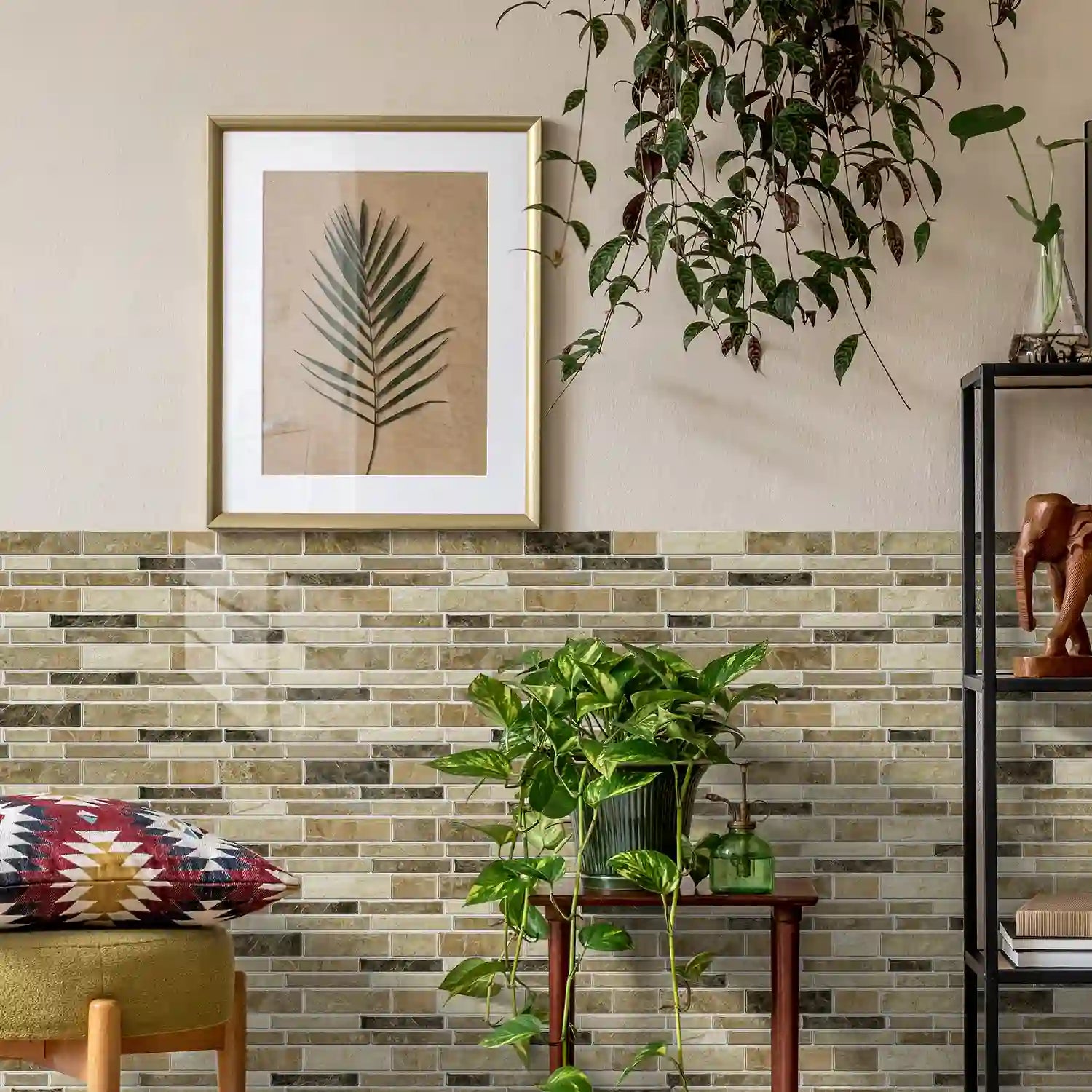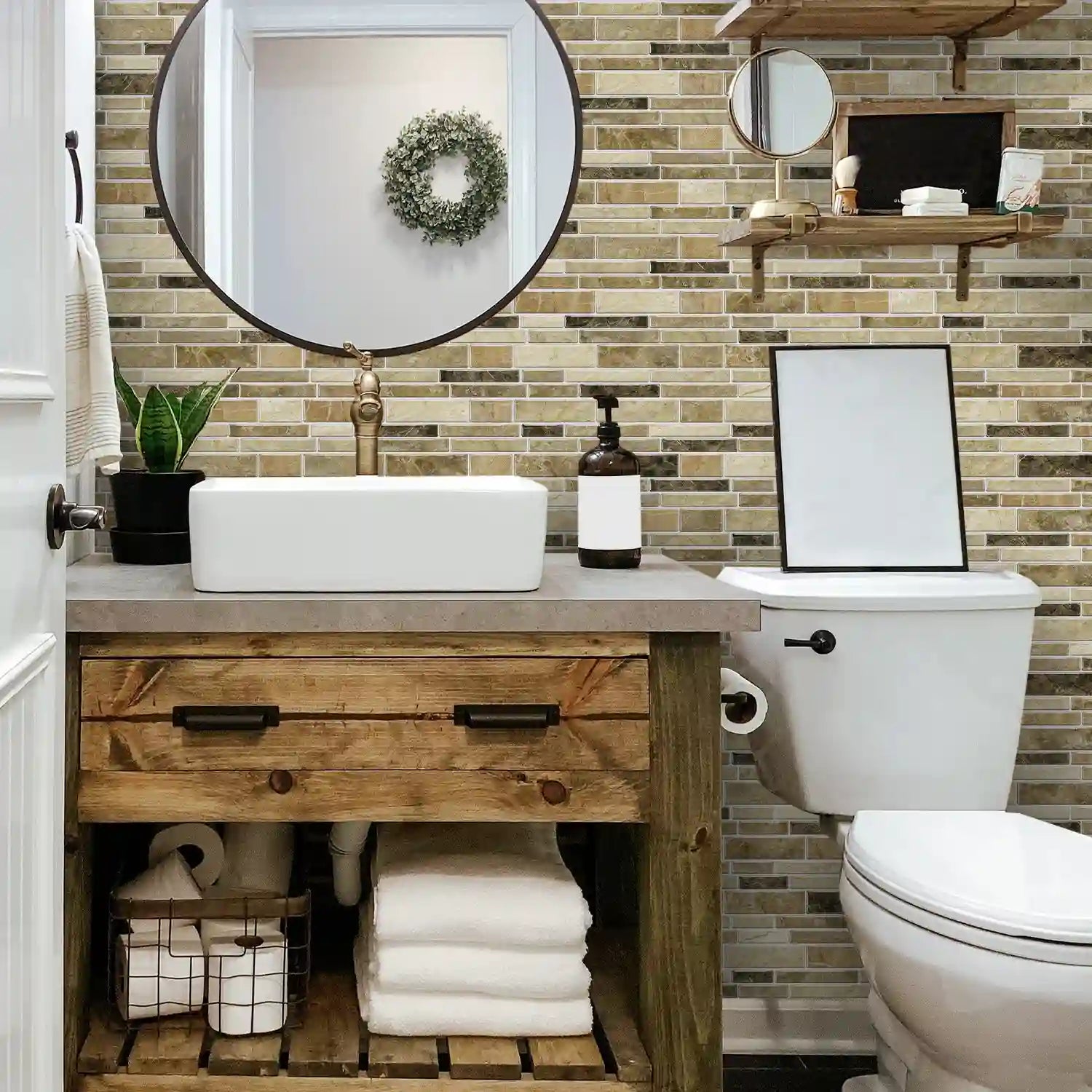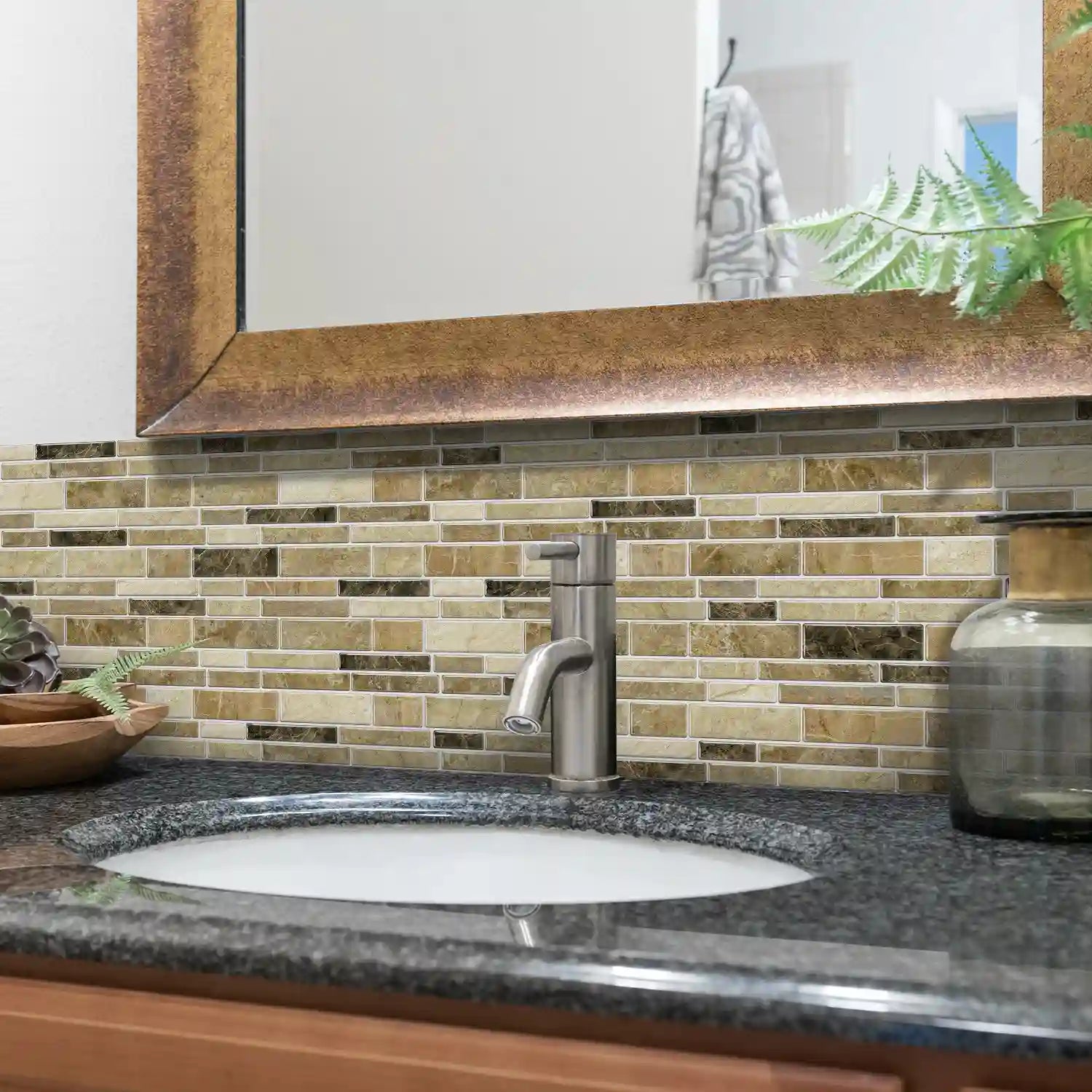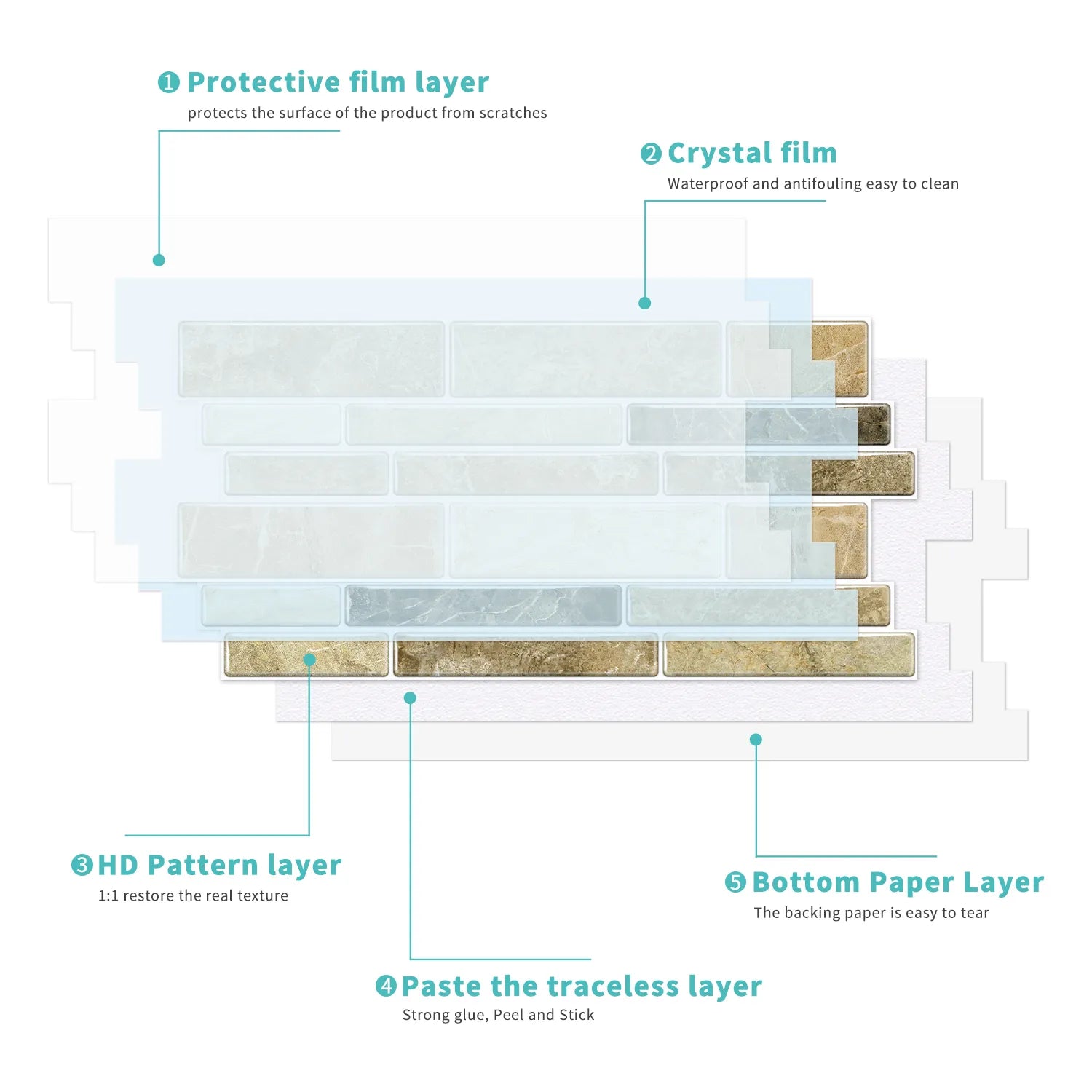 Special Shaped Marble Tile Sticker (Dark Yellow) 12pcs Peel And Stick Wallpaper Luxury and Elegant Style Wall Decor