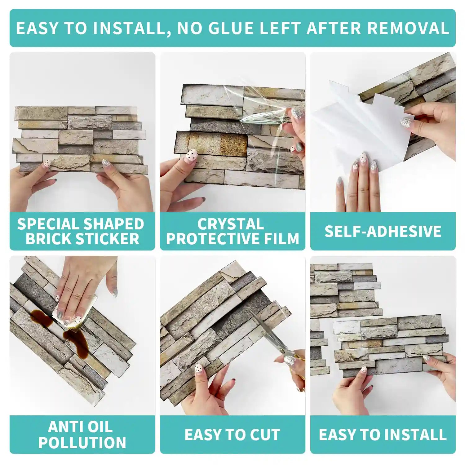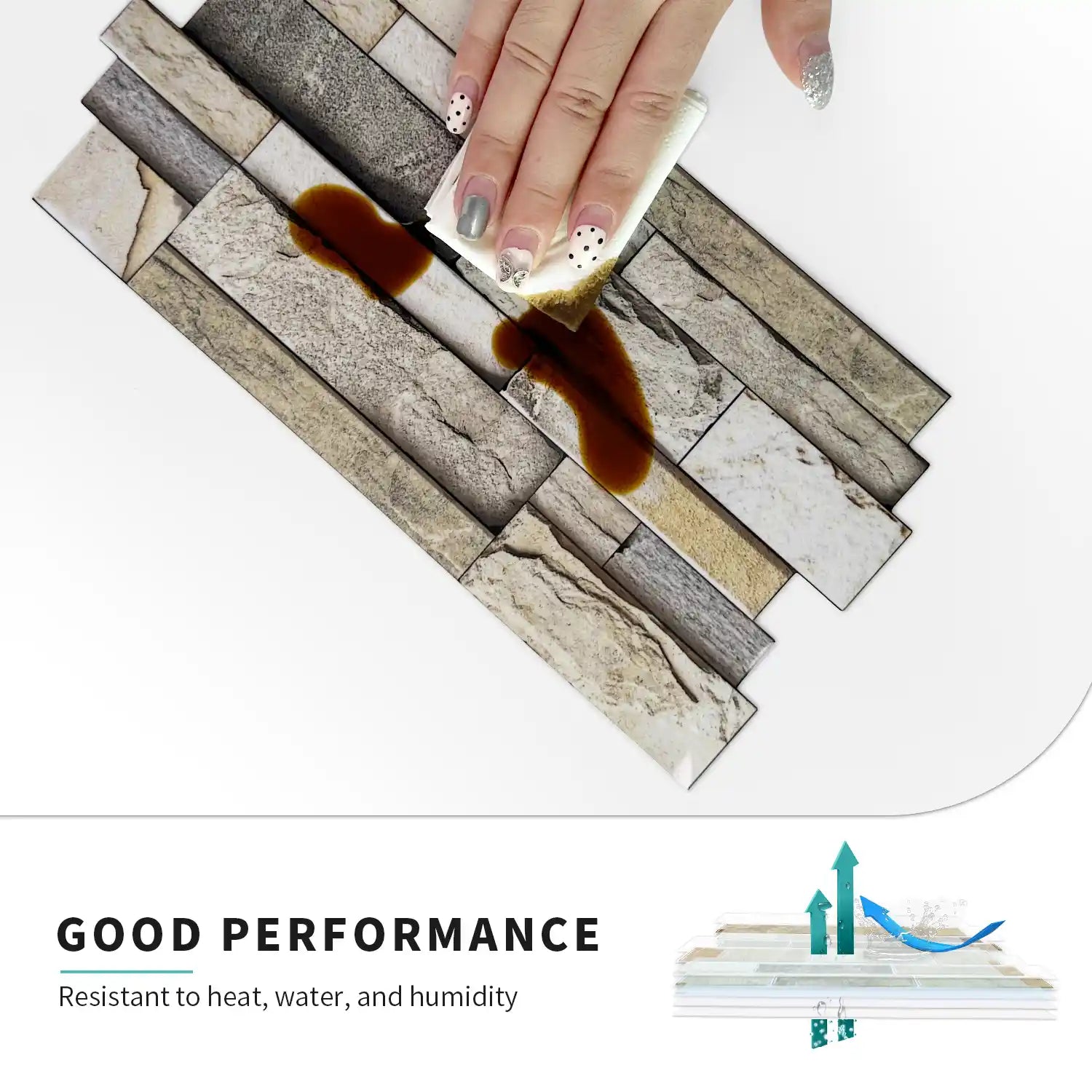 Special Shaped Marble Tile Sticker (Light Brown) 12pcs Peel And Stick Wallpaper Luxury and Elegant Style Wall Decor