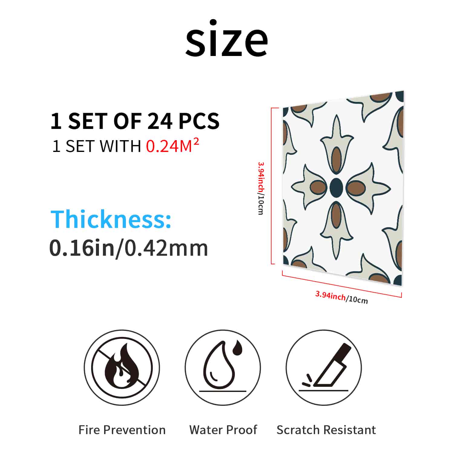 Customizable Size:Available in various sizes, these tile stickers can be easily cut to fit any space. This flexibility allows for tailored applications, ensuring a perfect fit for your unique project needs.