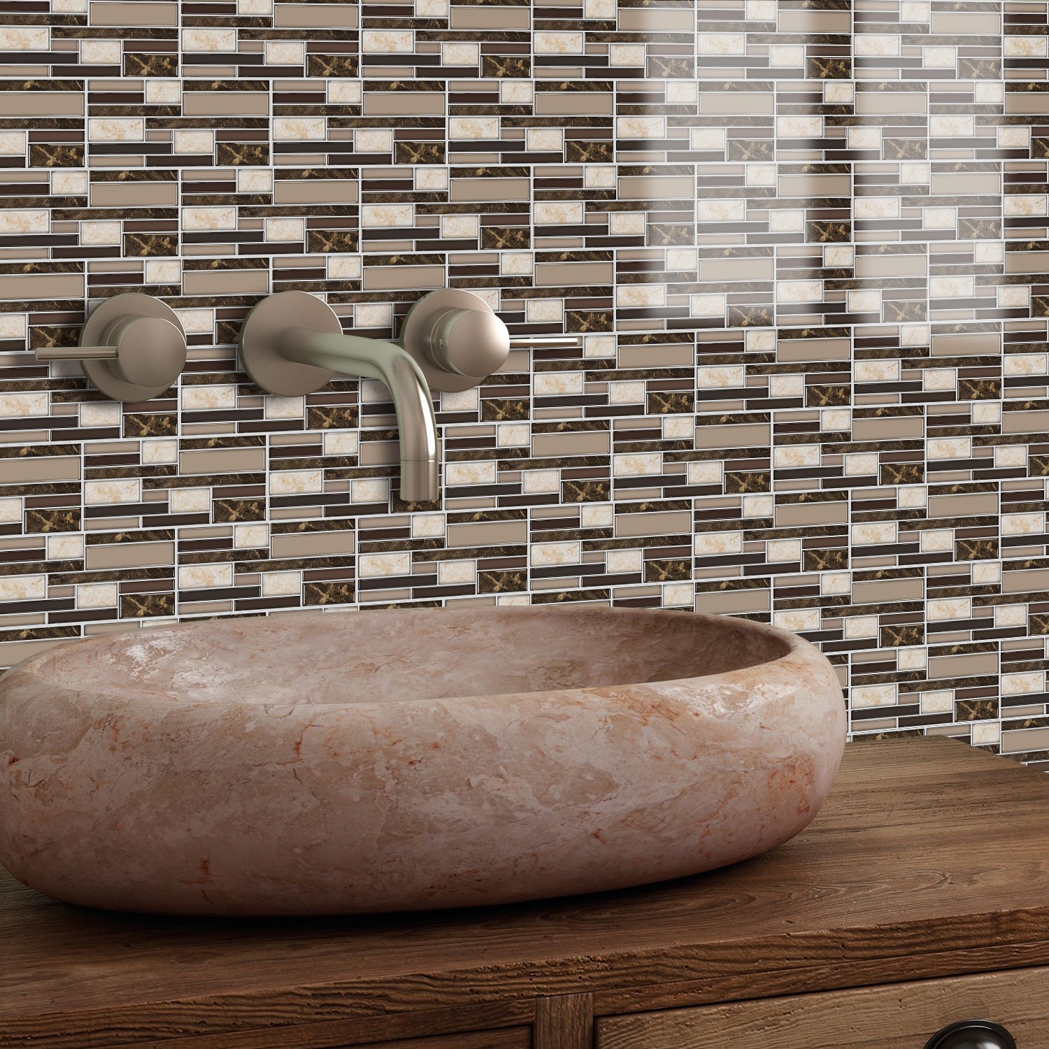 This marble floor sticker, with dark brown, beige and grey as the base, blended with gold and white exquisite embellishment, weaving a warm and rich chapter of colour. Pattern design, rectangular blocks staggered, different sizes, cleverly interwoven, not only to show the beauty of modern design simplicity, but also cleverly integrated into the natural texture of the marble, giving the ground with three-dimensional levels and vivid texture. The overall style is modern and elegant, whether it is a warm gathering in the living room, elegant dining in the restaurant, or a prestigious display of commercial space, can be perfectly integrated to create a unique atmosphere of warmth and comfort without losing the high-grade style, so that the space glows with infinite charm.