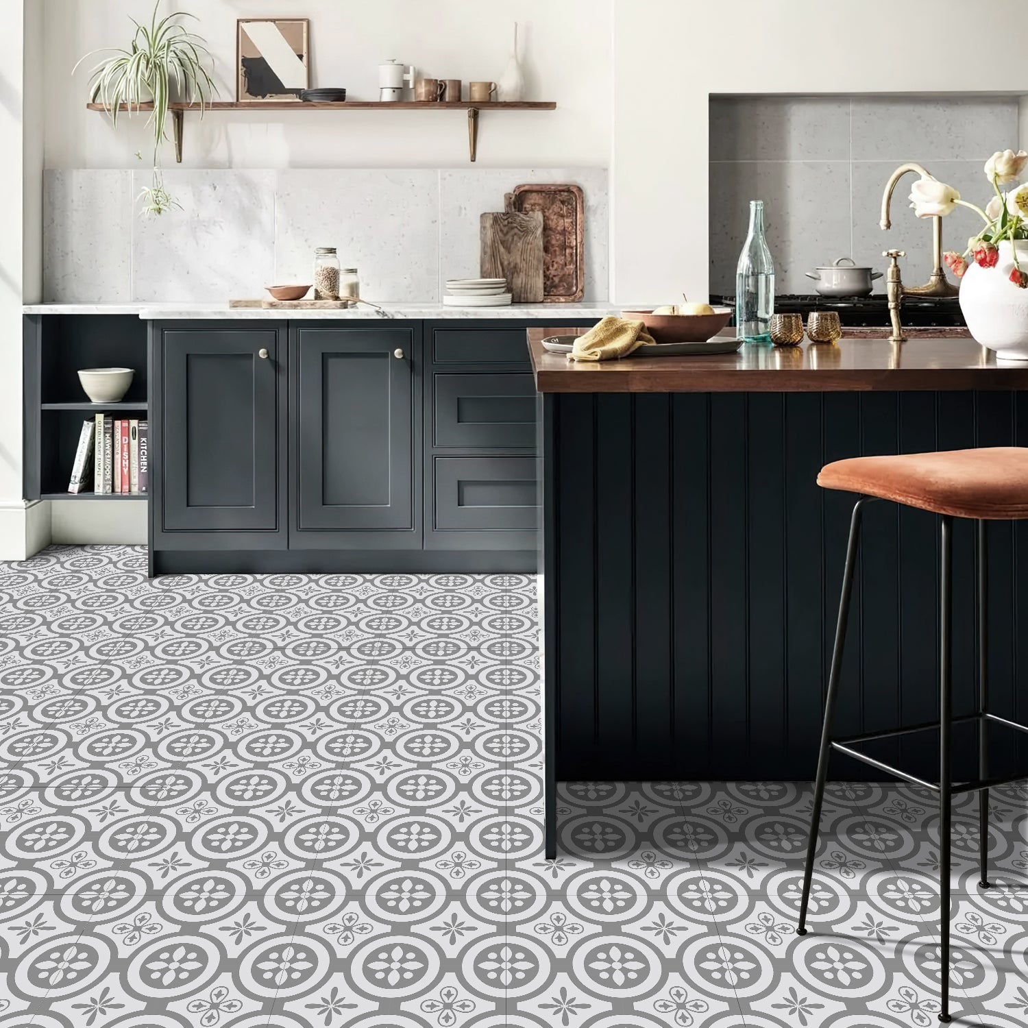The grey background with white patterned marble texture floor sticker cleverly blends grey and white in a harmonious match, creating a visual enjoyment that is both soft and modern. This choice of neutral tones makes it easy to integrate into a wide range of interior environments, whether it's a cosy home space or a modern business place, all of which can show off a remarkable style.For the design of the floral pattern, we have carefully selected a variety of floral and geometric shapes, which present a rich sense of layering through the simple yet delicate line outlining. These patterns intertwine with each other, not only retaining the spirit and vitality of natural elements, but also incorporating the minimalist aesthetics of modern design, adding a strong artistic atmosphere to the overall space.