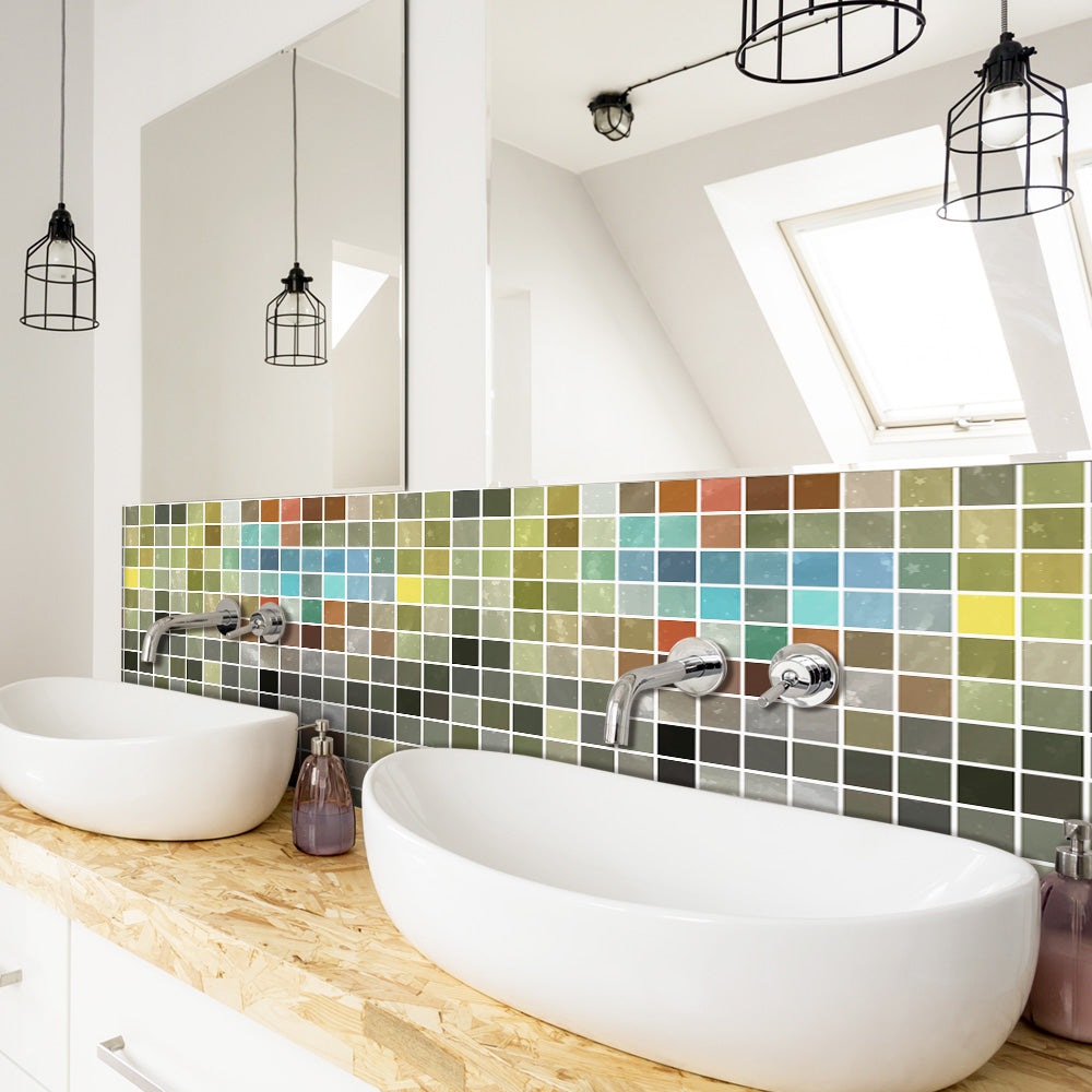 The design concept of mosaic stone texture wall sticker originates from the profound perception and delicate presentation of the beauty of nature. The design uses low saturation grey-green squares arranged in a staggered pattern, as if a green meadow gently swaying in the breeze, which not only enriches the colour level of the space, but also brings a peaceful and natural atmosphere. The exquisite use of mosaic technology, so that each piece of stone texture are delicate, light and shadow interlaced to show a rich texture and luster, as if each piece of ‘grass’ are gently flickering, adding a touch of vividness and vitality to the interior space. This design not only makes people feel the closeness and harmony of nature, but also reveals extraordinary taste and style in simplicity.