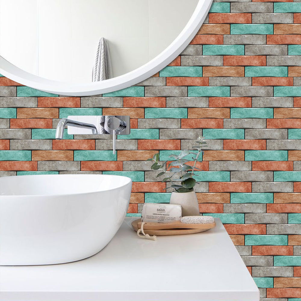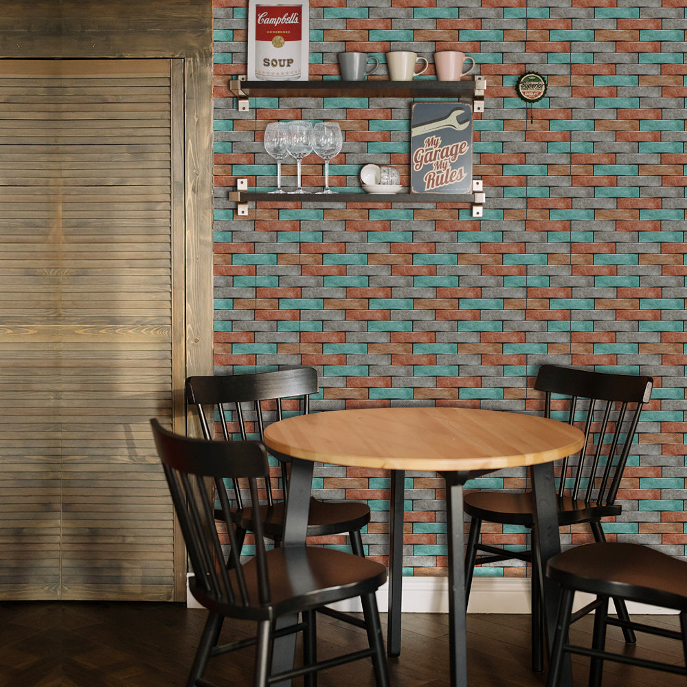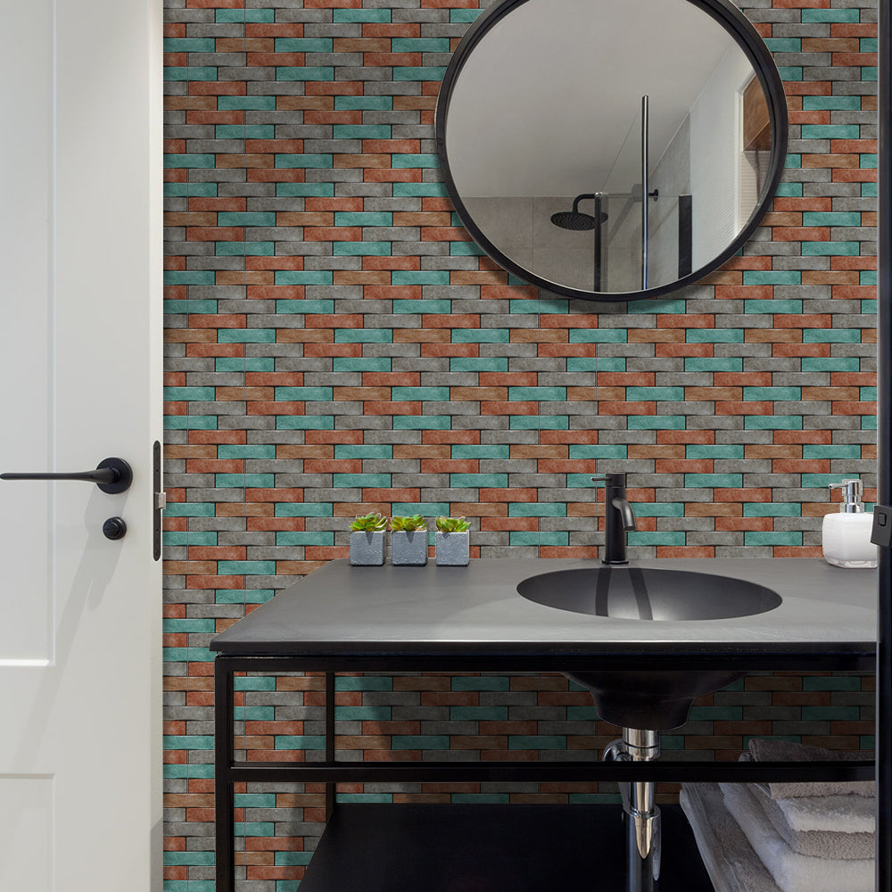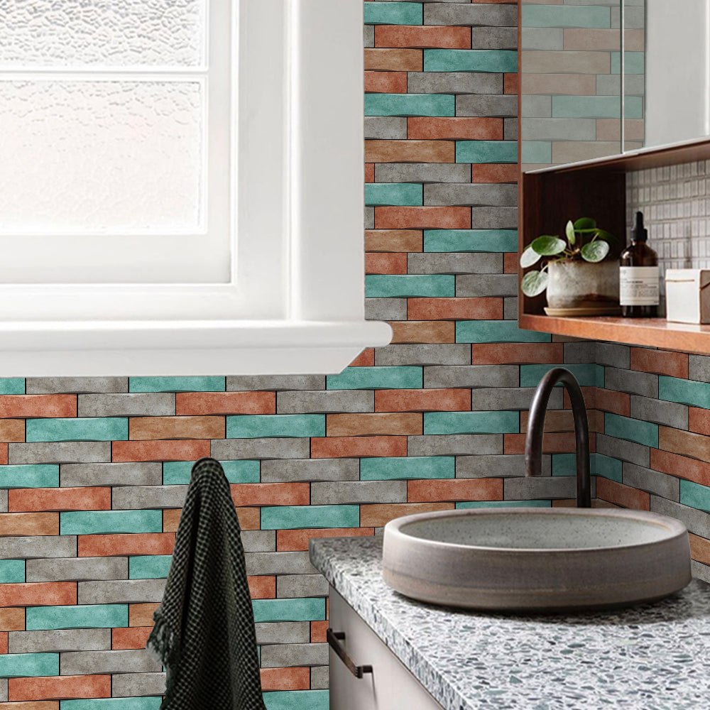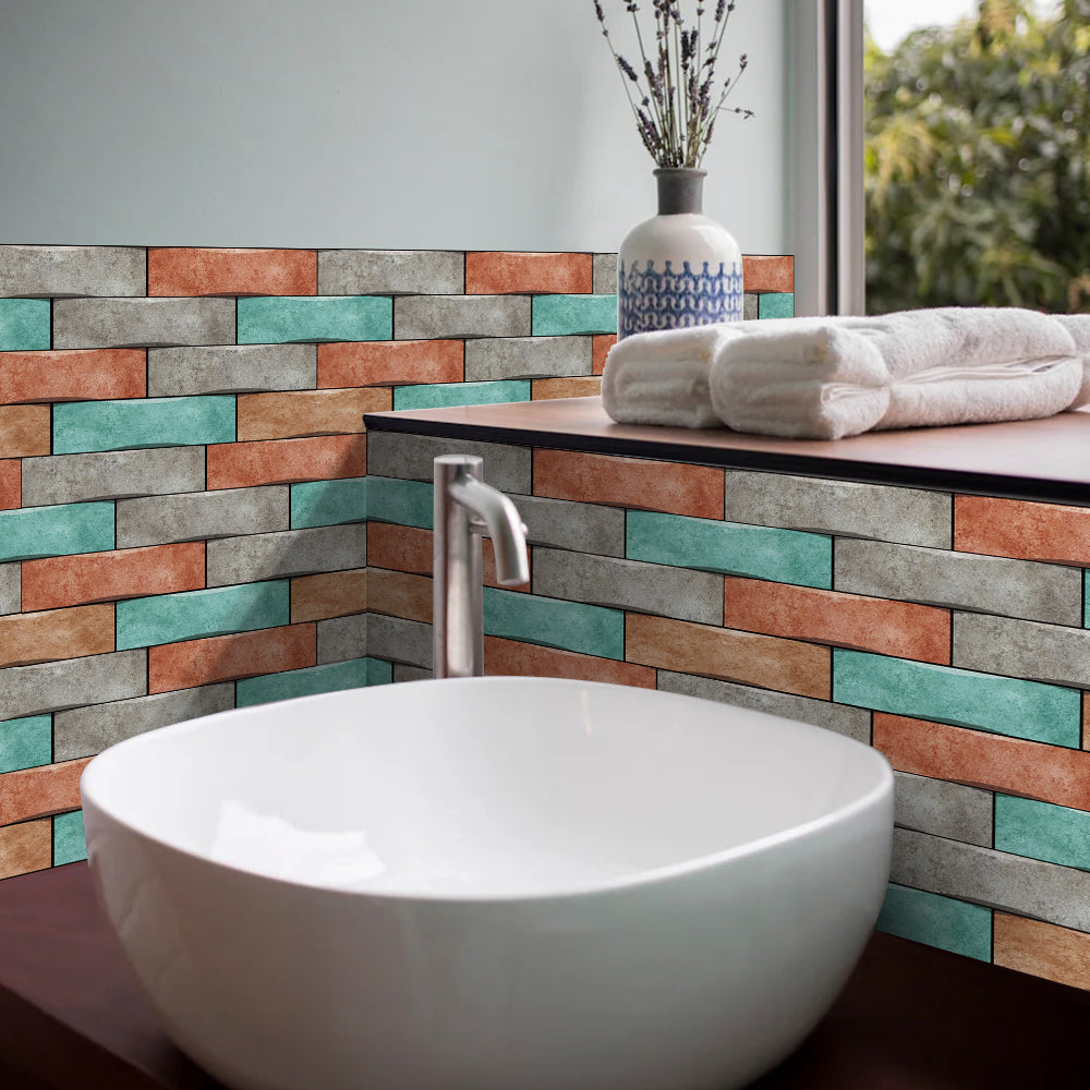 This floor sticker design brings a lively and energetic atmosphere to the home space with its unique colour scheme and clever floral patterns. The overall colour palette combines cyan, orange and grey, which intertwine to create a distinctive and vibrant visual effect, as if injecting infinite vitality into the space. Cyan brings freshness and naturalness, orange adds warmth and vitality, and grey serves as a neutral colour, making the overall tone more harmonious and unified.In pattern, the designer adopts the design concept of brick splicing, with alternating colours arranged to form a rich sense of hierarchy and dynamism. This design not only enhances the visual appeal, but also gives people a sense of rustic yet fashionable beauty. Each brick is like a carefully selected work of art, together building a modern and rustic space.