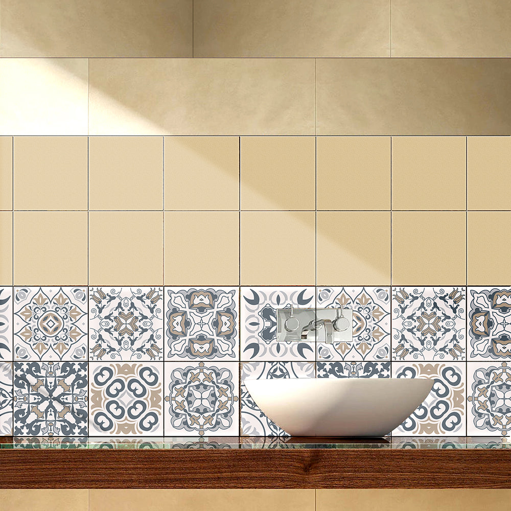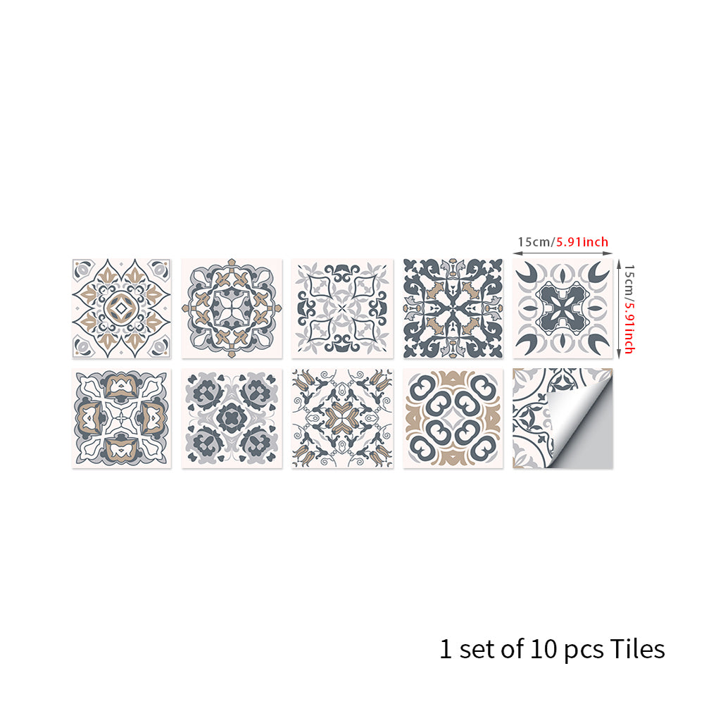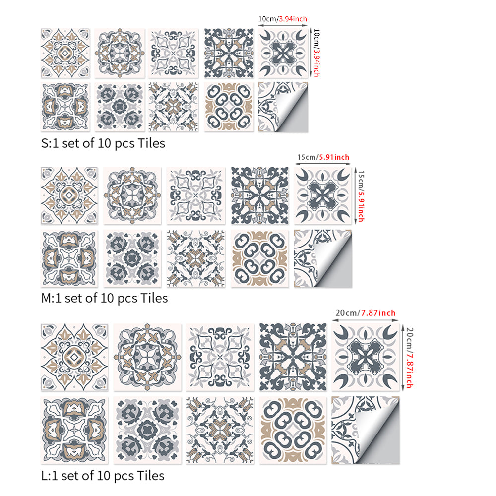 The design concept of this tile sticker is derived from the pursuit of retro and elegant style. In terms of color, a soft gray-brown color scheme is used. Gray brings calmness and elegance, while brown gives warmth and simplicity. The two match each other to create a retro and elegant atmosphere. In terms of pattern, retro patterns are the main elements. From vortex to geometric shapes, from flowers to geometric lines, each pattern is like coming from the old times, bringing a retro decorative effect to the interior space.