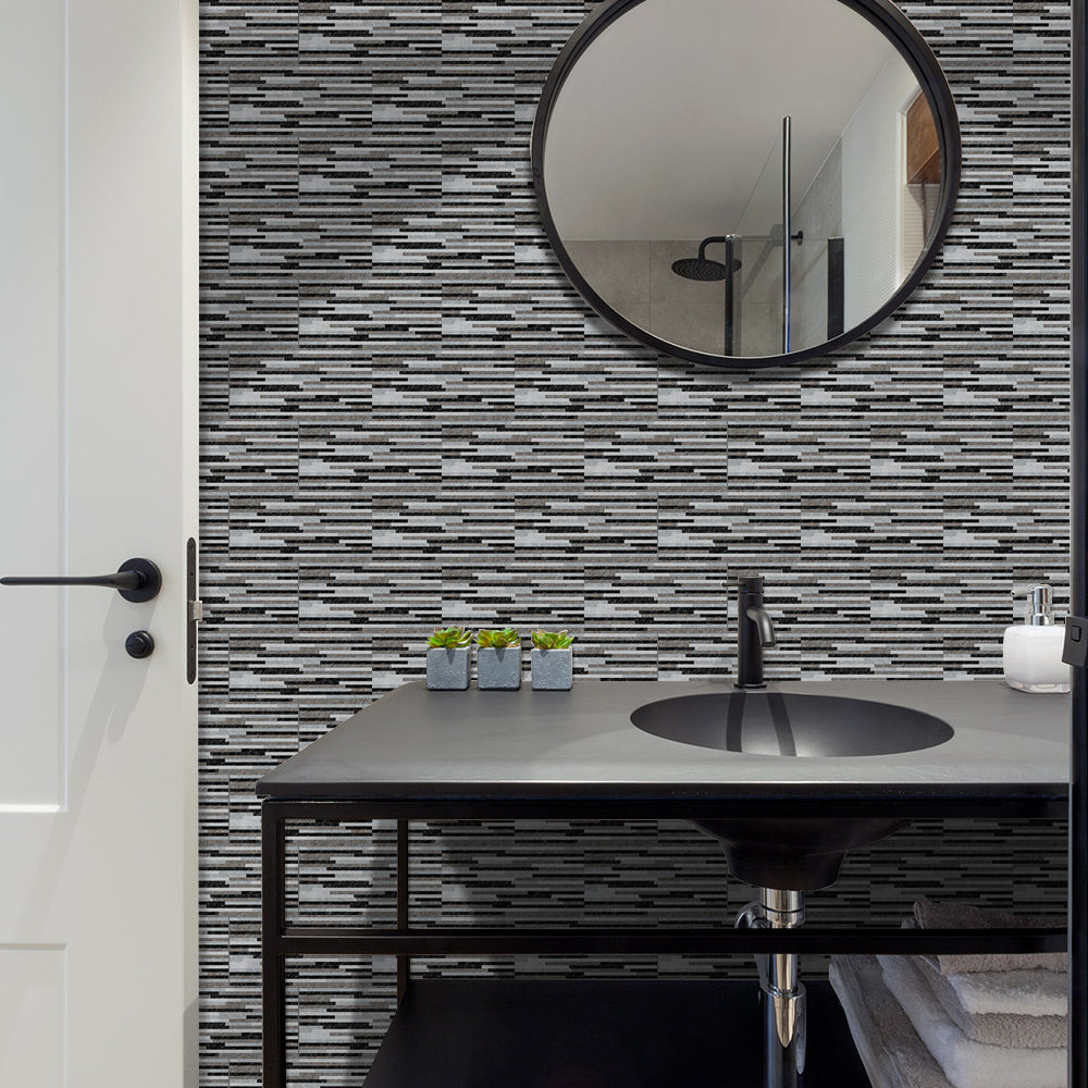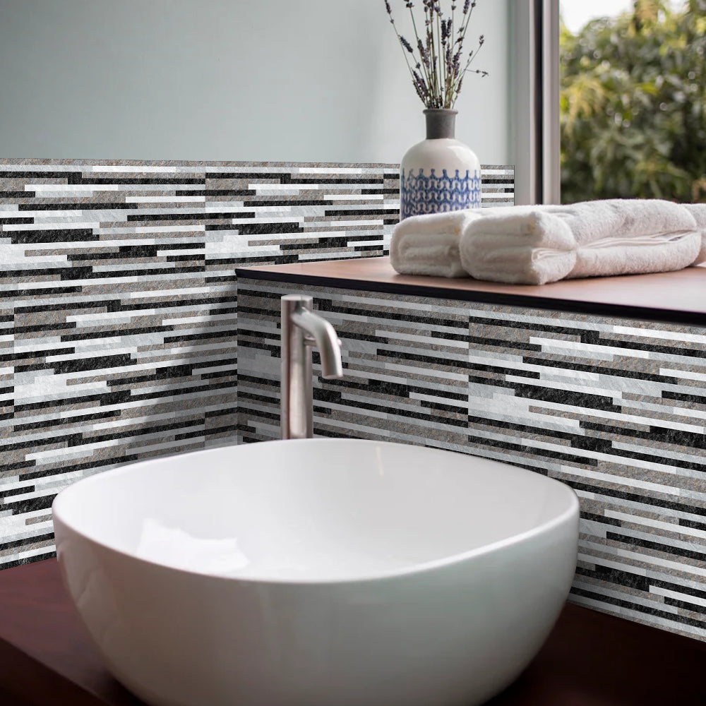 The body tone is dominated by black, grey and white, and these three colours are matched with each other, which not only shows a simple but high-class texture, but also creates a calm and introverted atmosphere, which is very suitable for the pursuit of a modern sense of home space.In the floral pattern, the designer cleverly used the design element of stripe splicing, through the arrangement of wide and narrow stripes, to build a rich sense of hierarchy and dynamism. This design not only breaks the dullness of a single colour, but also adds visual changes and interest to the space, so that people can feel a sense of beauty in the flow between walking.
