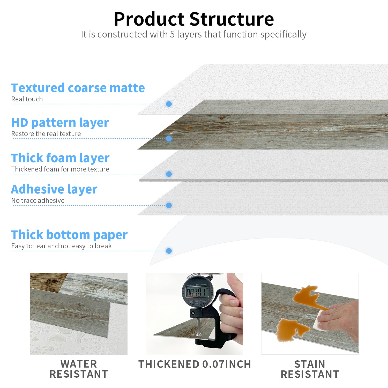 These peel-and-stick tiles are designed to emulate traditional European wood finishes, featuring a matte texture that closely resembles authentic wood grain. Each tile showcases rich earthy tones and intricate patterns, bringing the serene beauty of nature into your home. Ideal for kitchens, bathrooms, and accent walls, they create an inviting atmosphere that enhances your decor.