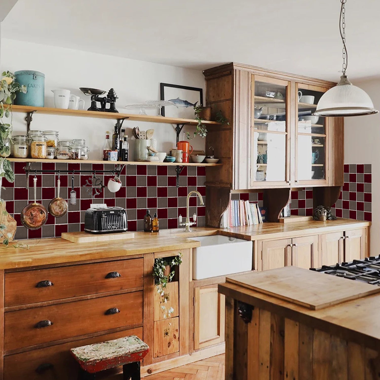 Designed to present a modern yet elegant aesthetic, this tile sticker creates a visual effect that is both stark and subdued through the clever pairing of red and grey. Arranged neatly, showing a unique sense of order and beauty, while increasing the sense of space levels, red and grey arranged between each other, not only to avoid the monotony of a single colour, but also through the contrast of colours, to enhance the overall visual effect. Overall, this tile sticker with red and grey as the main tone, through clever pattern design, the perfect blend of modern and elegant, for the wall to bring a unique decorative effect.