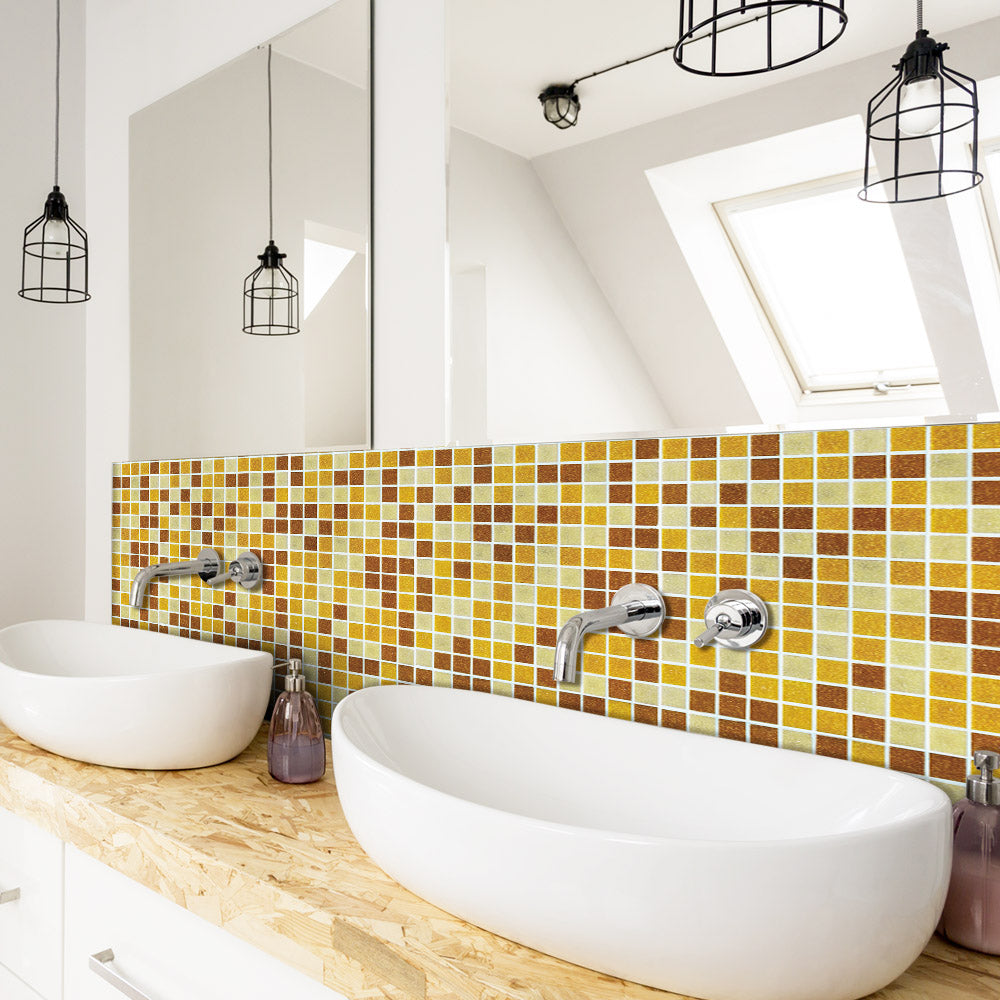 Inspired by the glittering golden grass of autumn, we have carefully selected yellow squares in different shades and arranged them in a staggered manner to simulate the unique colour gradation and light effect of autumn grass. We have carefully selected different shades of yellow squares, arranged in a staggered manner, simulating the unique colour gradient and light effect of the autumn meadow, which not only shows the beauty of the seasonal transition, but also gives the wall infinite vitality and energy. The use of mosaic technology not only delicately reproduces the natural texture of the stone, but also in the light, so that each piece of stone seems to be given life, emitting a soft and glossy light, as if the autumn sunshine sprinkled throughout the space. This design not only makes the interior space full of warmth and harmony, but also makes people feel as if they were in the autumn meadow full of vitality, feeling the infinite charm and gifts of nature.